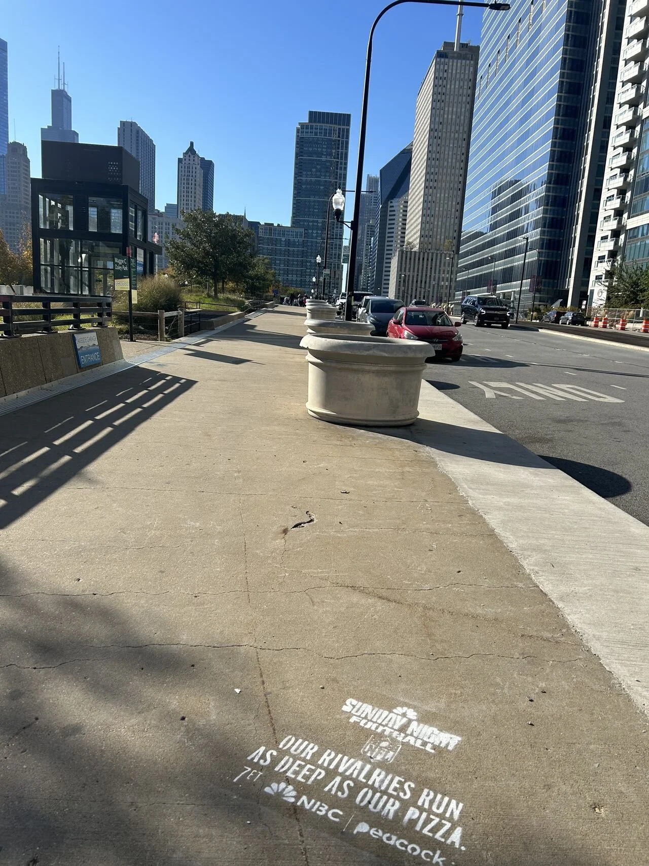 An unexpected, yet effective advertisement that I just saw on my way home. Strategically placed near one of Chicago’s most popular parks, and near an intersection of a neighborhood hot spot. Catch Sunday Night Football on Peacock.